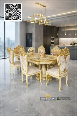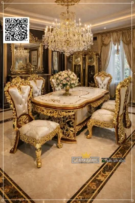 - Set Meja Makan Ukiran Jepara Mewah Gold Leaf
